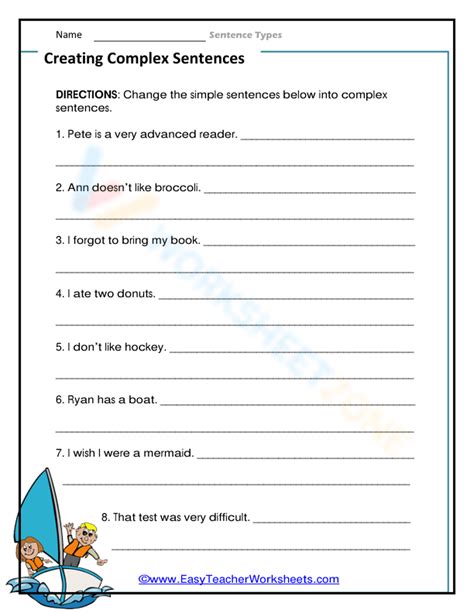 Creating Complex Sentences Worksheet. Web going from writing simple words to composing complete sentences can be an intimidating leap, but our writing sentences worksheets help ensure a soft landing thanks to dozens. There are three types of sentences in english: